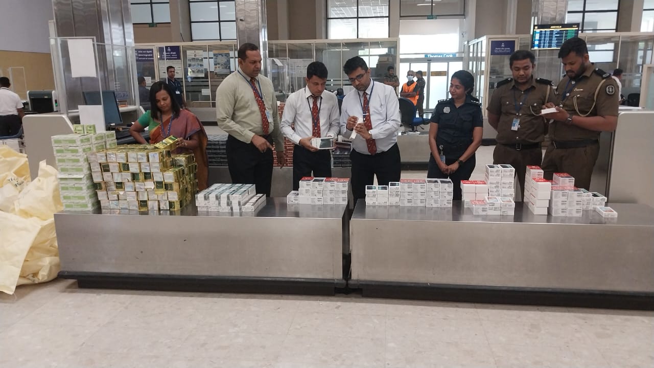 NEWSNOW | –  රුපියල් එක් කෝටි පනස් ලක්ෂයක් වටිනා නවීනතම ජංගම දුරකථන , සුවද විළවුන් සහ රූපලාවන්‍ය ආලේපන තොගයක් නීතිවිරෝධී ලෙස මෙරටට රැගෙන ආ ගුවන් මගීන් දෙදෙනෙකු සමග කටුනායක ගුවන් තොටුපොළ රේගු නිලධාරීන් විසින් 04/23 දින අලුයම අත් අඩංගුවට ගෙන තිබේ .