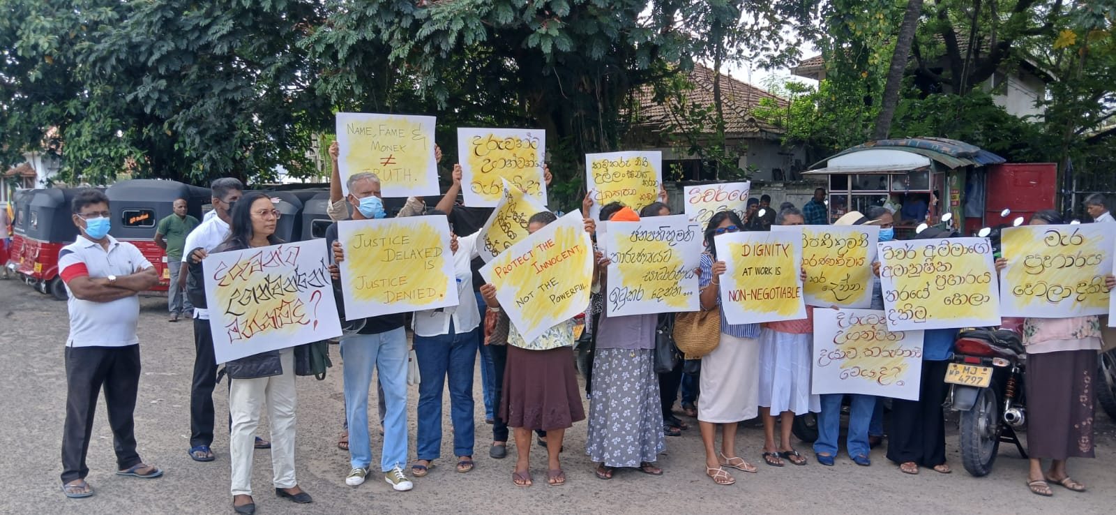 සැකකරුවන් අධිකරණයට රැගෙන යන අවස්ථාවේ ප්රහාරයට ලක්වූ තරුණයාගේ ඥාතීන් සහ හිතමිතුරන් මීගමු අධිකරණය ඉදිරිපිටදී නිහඬ විරෝධතාවයකද නිරතවිය.