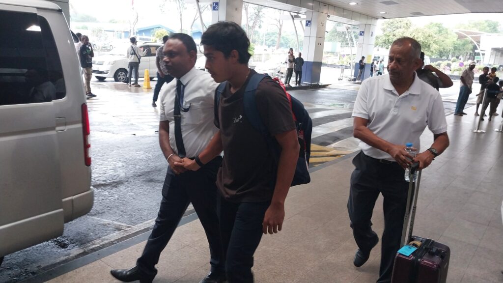 ඔහු සමග ශ්රී ලංකා ක්රිකට් ආයතනයේ නිලධනිලධාරියෙකු ද පැමිණ සිටි අතර , වහා ගුවන් තොටුපොළෙන් නිශ්කාශනය වූ ඔහු කටුනායක ගුවන් තොටුපොළෙන් කඩිනමින් පිට වී ගියේය.