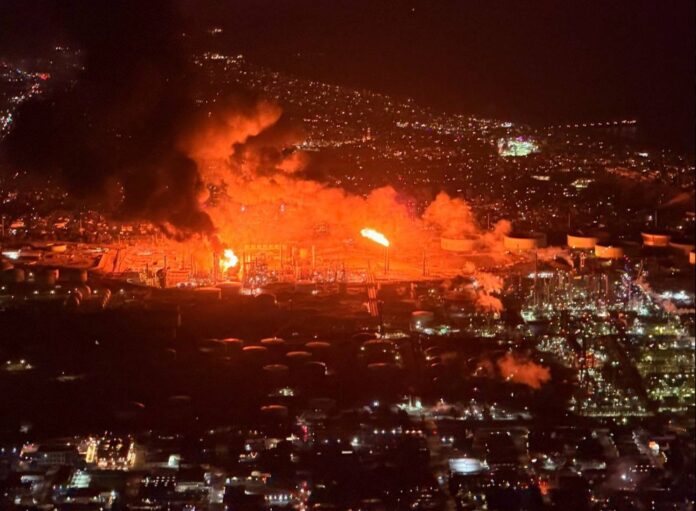 NEWSNOW | – අමෙරිකාවේ බටහිර වෙරළ තීරයේ විශාලම තෙල් පිරිපහදුවක් වන ඇන්ජලීස් හි චෙව්රොන් පිරිපහදුවේ දැවැන්ත ගින්නක් හටගෙන තිබේ.