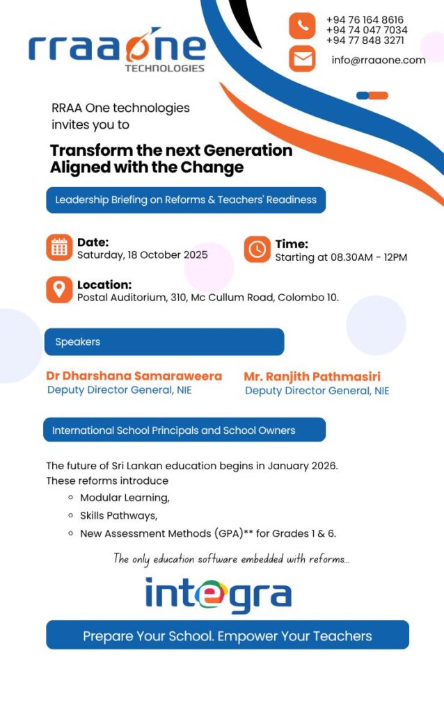 මෙම විෂයේ වැදගත්කම සැලකිල්ලට ගනිමින් සංවිධානය කර ඇති මෙම සම්මන්ත්රණය පිළිබඳ වැඩිදුර තොරතුරු ලබා ගැනීමට මෙම දුරකථන අංක ඔස්සේ සම්බන්ධ විය හැක. 1094 76 164 8616, +94 76 164 8616, +94 74 047 7034, +94 77 848 3271, info@rraaone.com.