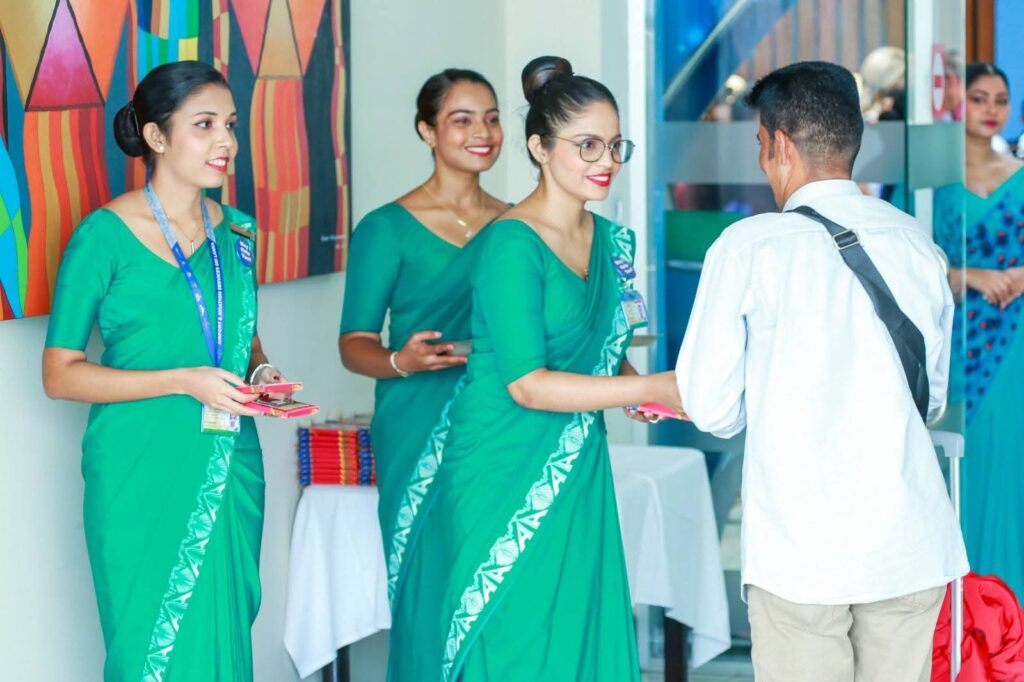 සමාරම්භක ගුවන් ගමන් පිළිගැනීමේ උත්සවය අද (27) බණ්ඩාරනායක ජාත්යන්තර ගුවන්තොටුපළේදී (BIA) පවත්වන ලද අතර, ගුවන්තොටුපළ සහ ගුවන් සේවා (ශ්රී ලංකා) (පුද්ගලික) සමාගම විසින් ජල කාලතුවක්කු ආචාරයක් පිරිනමන ලද අතර, පසුව ශ්රී ලංකා සංචාරක ව්යාපාරය විසින් උඩරට නර්තන ප්රසංගයක් පවත්වන ලදී. ඊට අමතරව, ශ්රී ලංකා තේ මණ්ඩලය විසින් පිරිනමන ලද සිලෝන් තේ තෑගි සමඟ මගීන් උණුසුම් ලෙස පිළිගනු ලැබීය.