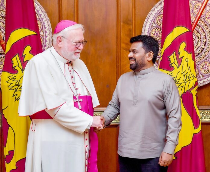 NEWSNOW | – නිල සංචාරයක් සඳහා මෙරටට පැමිණි වතිකානුවේ රාජ්ය සහ ජාත්යන්තර සංවිධාන සබඳතා පිළිබඳ ලේකම්, අගරදගුරු පෝල් රිචඩ් ගැලගර් හිමිපාණන් ජනාධිපති අනුර කුමාර දිසානායක මහතා හමුවෙයි.