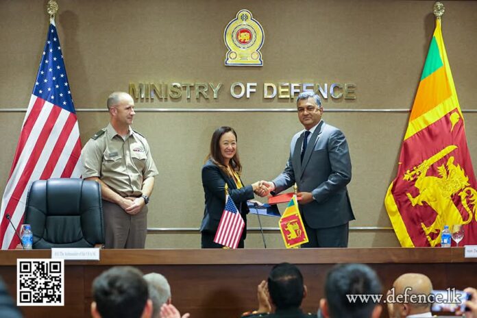 මෙම ගිවිසුම එක්සත් ජනපදය වෙනුවෙන් එක්සත් ජනපද තානාපති ජූලි චුන්ග් සහ බ්රිගේඩියර් ජෙනරාල් ට්රෙන්ටන් ගිබ්සන් විසින් ආරක්ෂක අමාත්යාංශයේදී අත්සන් කරන ලද අතර, ශ්රී ලංකාව නියෝජනය කළේ ආරක්ෂක ලේකම් එයාර් වයිස් මාෂල් සම්පත් තුයකොන්තා (විශ්රාමික) විසිනි.