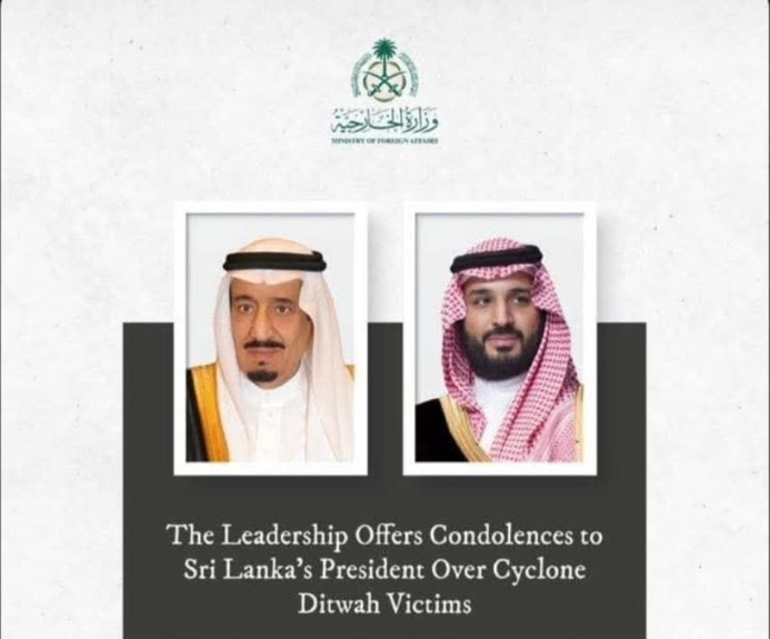 ඔටුන්න හිමි කුමරු සහ අගමැති, රාජකීය උතුම් කුමරු මොහොමඩ් බින් සල්මාන් බින් අබ්දුල්අසීස් අල් සවුද්, තම රටට බලපෑ දිට්වා සුළි කුණාටුවෙන් විපතට පත් වූවන් සම්බන්ධයෙන් ශ්රී ලංකා ප්රජාතන්ත්රවාදී සමාජවාදී ජනරජයේ ජනාධිපති අනුර කුමාර දිසානායක වෙත ශෝකය සහ සංවේගය පළ කරමින් කේබල් පණිවිඩයක් යවා ඇත.