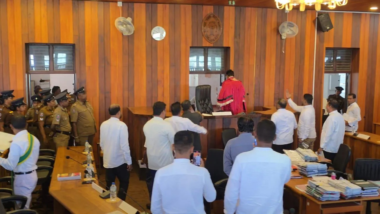 ඒ පසුගියදා ගාල්ල මහ නගර සභාවේ විශේෂ මහා සභා රැස්වීමේ දී නොසන්සුන්කාරී ලෙස හැසිරෙමින් එහි නාගරික ලේකම්වරිය ඇතුළු නිලධාරී මණ්ඩලයට ජල ප්‍රහාර එල්ල කර සාපරාධී බලහත්කාරය පා රාජකාරියට බාධාකිරීම සම්බන්ධයෙනි.