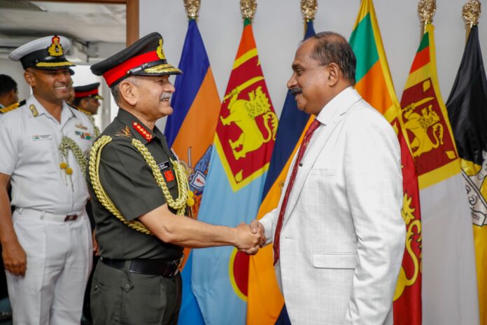 ඉන්දීය යුද්ධ හමුදා ප්රධානී ජෙනරල් උපේන්ද්ර ද්විවේදි මහතා හා මෙරට ආරක්ෂක නියෝජ්ය අමාත්ය විශ්රාමික මේජර් ජෙනරල් අරුණ ජයසේකර මහතා ඊයේ (07) කොළඹ පිහිටි ආරක්ෂක නියෝජ්ය අමාත්ය කාර්යාලයේදී හමු වී තිබේ.