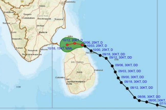 NEWSNOW| – නිරිත දිග බෙංගාල බොක්ක ප්රදේශයේ පැවති පීඩන අවපාතය අද(10) පෙ.ව. 11.30 පමණ වනවිට මුලතිව් සිට කිලෝමීටර 20ක් පමණ නැගෙනහිරින් පිහිටා තිබූ බව කාලගුණ නම් ක විද්යා දෙපාර්තමේන්තුව නිවේදනයක් නිකුත් කරමින් දන්වා සිටී.