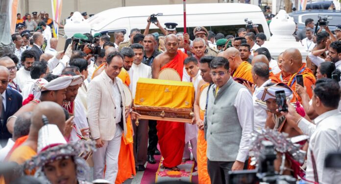 ඓතිහාසික දෙව්නිමෝරි පුදබිමෙන් වැඩම කෙරුණු සර්වඥ ධාතූන්වහන්සේ යළි ඉන්දියාව බලා වැඩම කරවීම අද