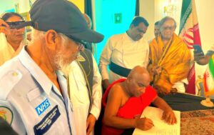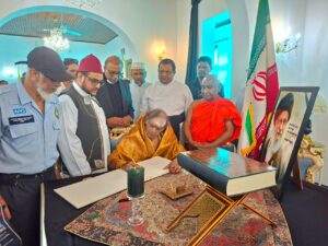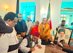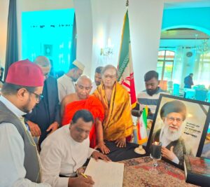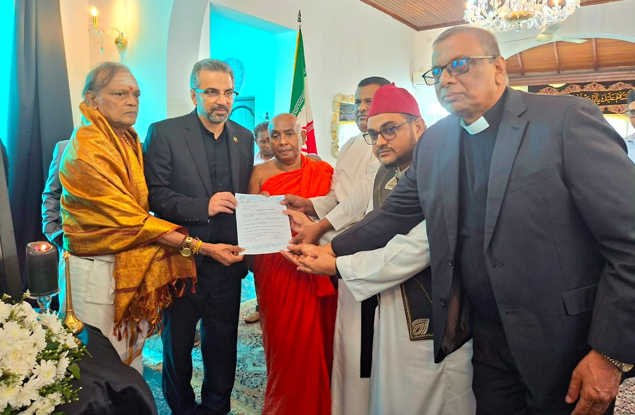 ජාතික අන්තර් ආගමික පූජක එකමුතුව නියෝජනය කරමින් පූජ්ය ආචාර්ය ශ්රාස්ත්රපති ගලගම ධම්මරන්සි නායක හිමි, සිව ශ්රි ආචාර්ය ඛාඛු ශර්මා කුරුක්කල්තුමා, අල්-හාජ් අශ්-සෙය්යිද් ආචාර්ය හසන් මවුලානා අල්-කාදිරි පුජකතුමා සහ ගරු ආචාර්ය නිශාන් සම්පත් කුරේ පියතුමා ඇතුලු සර්ව ආගමික නායකයින් ශ්රි ලංකාව සදහා ඉරානය තානාපතිතුමාගේ නිල නිවසට ගොස්, ඇමෙරිකානු සහ ඊශ්රායලය ඛෝම්ඛ පුහාරයකින් ජීවිතක්ෂයට පත් වූ ඉරානයේ ආධ්යාත්මික නායක අතිඋතුම් ආයතුල්ලා අලි කොමෙයිනි ආධ්යාත්මික නායකයාගේ අභාවය පිළිබඳව සංවේගය පළ කරමින්, ශෝකය ප්රකාශ කිරීමේ පොතෙහි අත්සන් තැබීම සිදුකළහ.