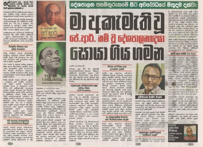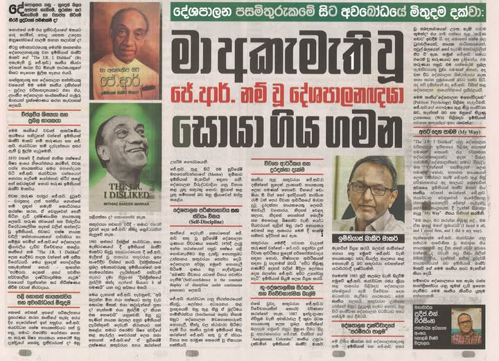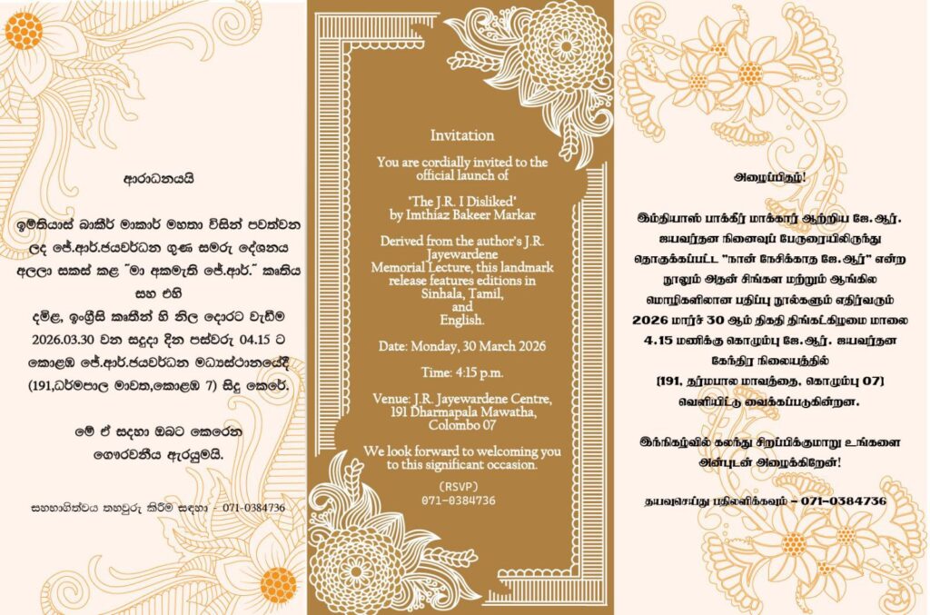 දේශපාලනය යනු හුදෙක් බලය ලබා ගැනීමේ සටනක් පමණක්මද? නැතහොත් එය විරුද්ධවාදියාගේ මතයට ගරු කරමින්, මනුෂ්යත්වයේ පාලම් තනන කලාවක්ද? හිටපු අමාත්යවරයෙකු මෙන්ම කෘතහස්ත දේශපාලනඥයෙකු වන ඉම්තියාස් බාකීර් මාකර් ගේ “The J.R. I Disliked” (මා අකමැති වූ ජේ.ආර්.) කෘතිය කියවා අවසන් කරන විට ඕනෑම පාඨකයෙකුගේ සිතට නැගෙන මූලික පැනය එයයි. ශාස්ත්රඥයෙකු සහ දේශපාලනයේ නිරත වන්නෙකු ලෙස මම මෙම කෘතිය දකින්නේ පුද්ගල චරිතාපදානයකට එහා ගිය, ලාංකීය දේශපාලන සංස්කෘතියේ ගැඹුරු මානයන් ස්පර්ශ කරන කැඩපතක් ලෙසයි.