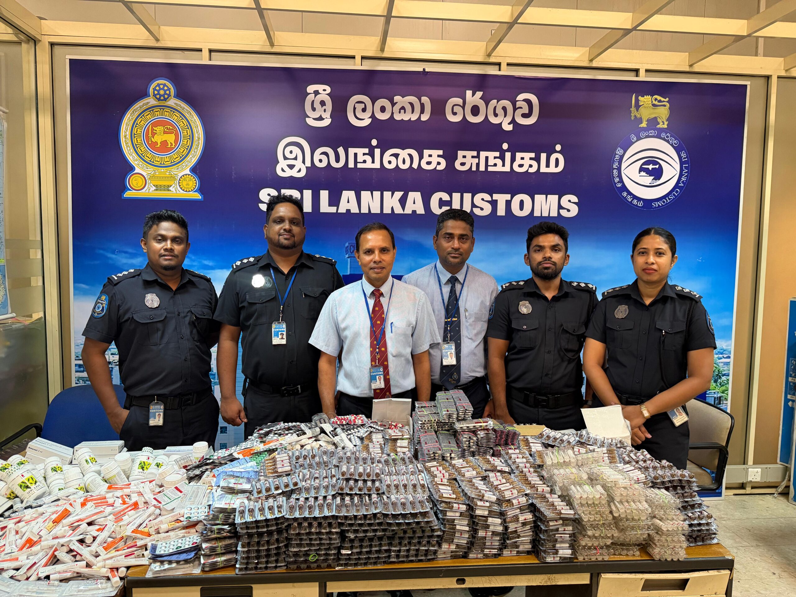 එහිදී ඔවුන් විසින් රැගෙන ආ ගමන් මලු 08 ක් තුළ එන්නත් පෙති , කරළ් සහ ආලේපන ඇතුළත් කිලෝ ග්රෑම් 65 ක් බර , බටහිර ඖෂධ තොගයක් සගවා ගෙන තිබුණි.