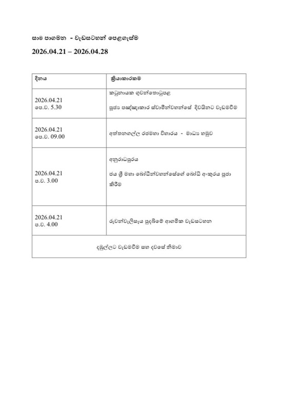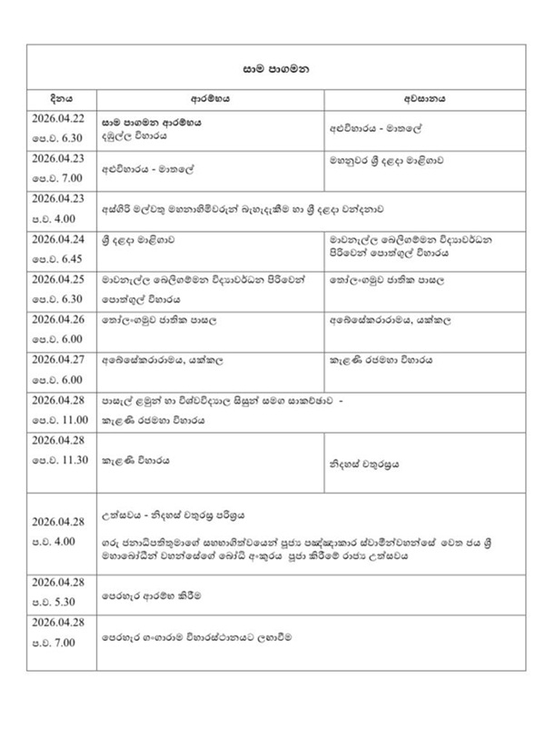 ලෝක ප්රසිද්ධ “සාමය සඳහා පා ගමන” වන්දනා වැඩසටහන 2026 අප්රේල් 21 සිට 28 දක්වා ශ්රී ලංකාවේ පූර්ණ රාජ්ය අනුග්රහය යටතේ පැවැත්වේ.