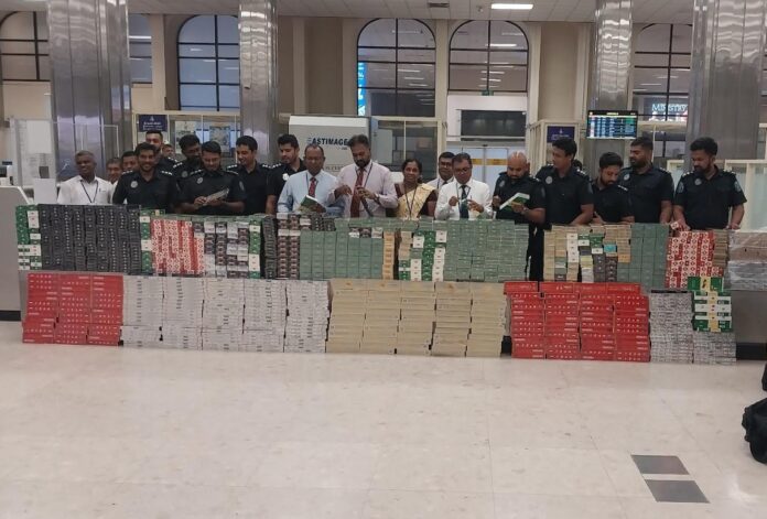 රුපියල් තුන් කෝටි හතලිස් හතර ලක්ෂ හැත්තෑ දහසක් වටිනා චීනයේ නිෂ්පාදිත දැවැන්ත දුම්වැටි තොගයක් නීතිවිරෝධී ලෙස මෙරටට රැගෙන විත් ඒවා කටුනායක ගුවන් තොටුපොළ පැමිණීමේ පර්යන්තයේ කිසිවක් ප්රකාශ කිරීමට නොමැති ” හරිත මාවත ” (Green Channel) ඔස්සේ පිට කර ගෙන යමින් සිටි චීන ජාතිකයෙකු අද (20) අලුයම ගුවන් තොටුපොළ රේගු නිලධාරීන් පිරිසක් විසින් අත් අඩංගුවට ගෙන තිබේ.