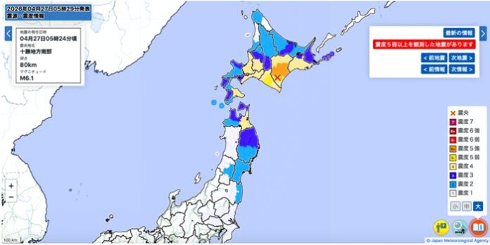 ජපාන කාලගුණ විද්යා ඒජන්සිය වාර්තා කර ඇත්තේ එය එරට වේලාවේන් උදෑසන 5.24ට මෙම භූ කම්පනය සිදුව රික්ටර් මාපක 6.2ක අගයක් ගෙන ඇති බවත්ය.